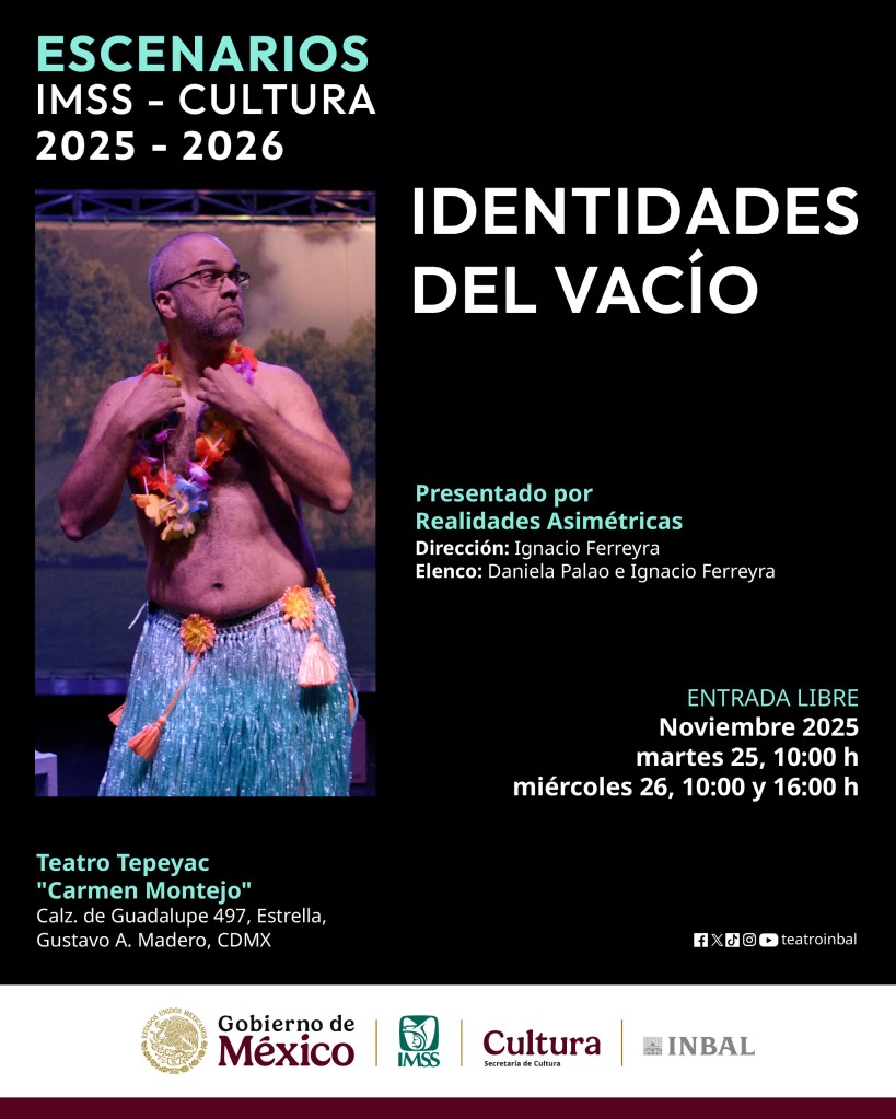 Y en noviembre, nuestra primera obra, Identidades del vacío, estará dando funciones en el Teatro Tepeyac de la CDMX, como parte de la convocatoria Escenarios IMSS Cultura 2025-2026.